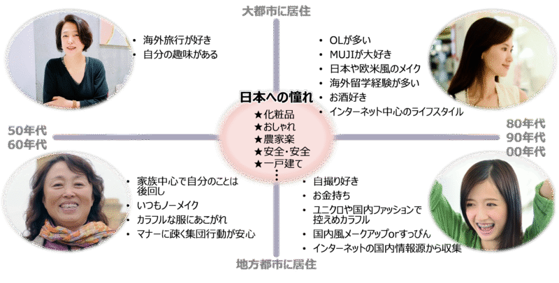 訪日中国人のなかでも、女性は非常に重要な存在ですが、その関心や消費行動は、年代や地域によって大きく異なります。