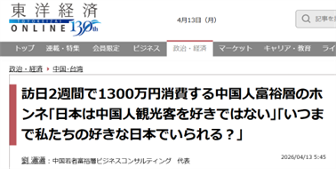 先日、 東洋経済ONLINEにて「訪日2週間で1300万円消費する中国人富裕層のホンネについて」 の記事が掲載されました。
